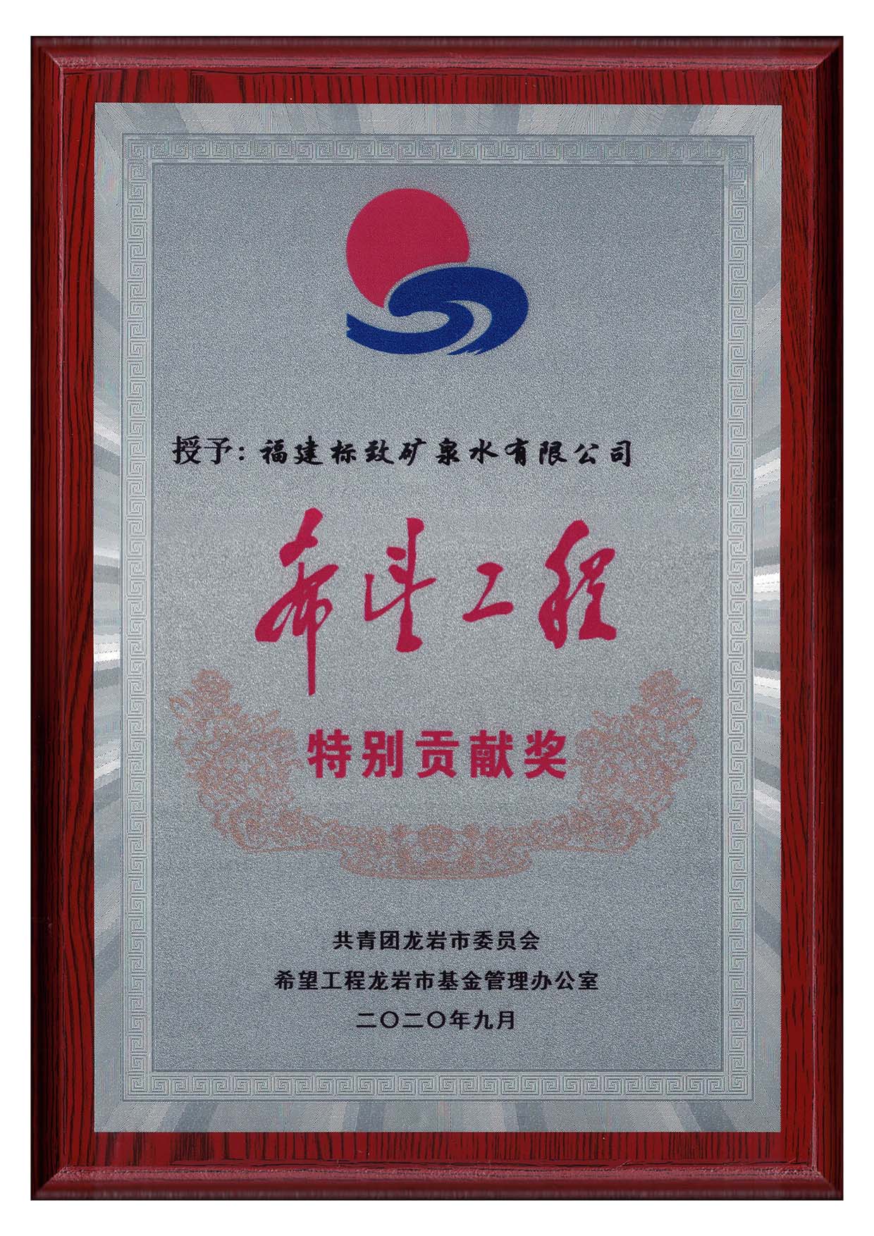 • 2020-09-182020年9月,福建標致礦泉水有限公司被授予“希望工程特別貢獻獎”!